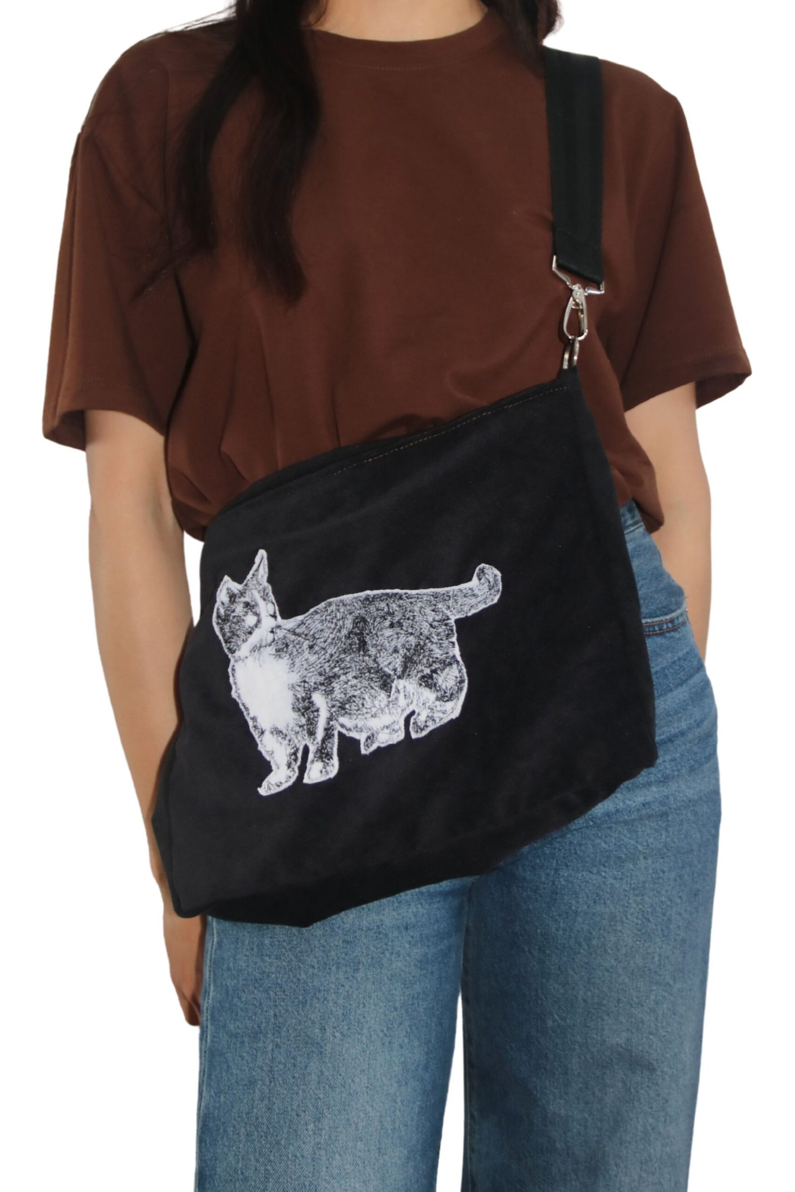 Como todos los Macchiabags, esta pieza cuenta con un interior ilustrado que amplía la narrativa del animal representado en el bordado. No se trata únicamente de un elemento decorativo: detrás de cada animal existe una historia, un conjunto de formas y detalles que surgen de su mundo simbólico. Al adquirir este bolso, no solo llevas un accesorio, sino que entras a formar parte de un imaginario ilustrado, donde la imagen del gato se transforma en objeto de uso diario.