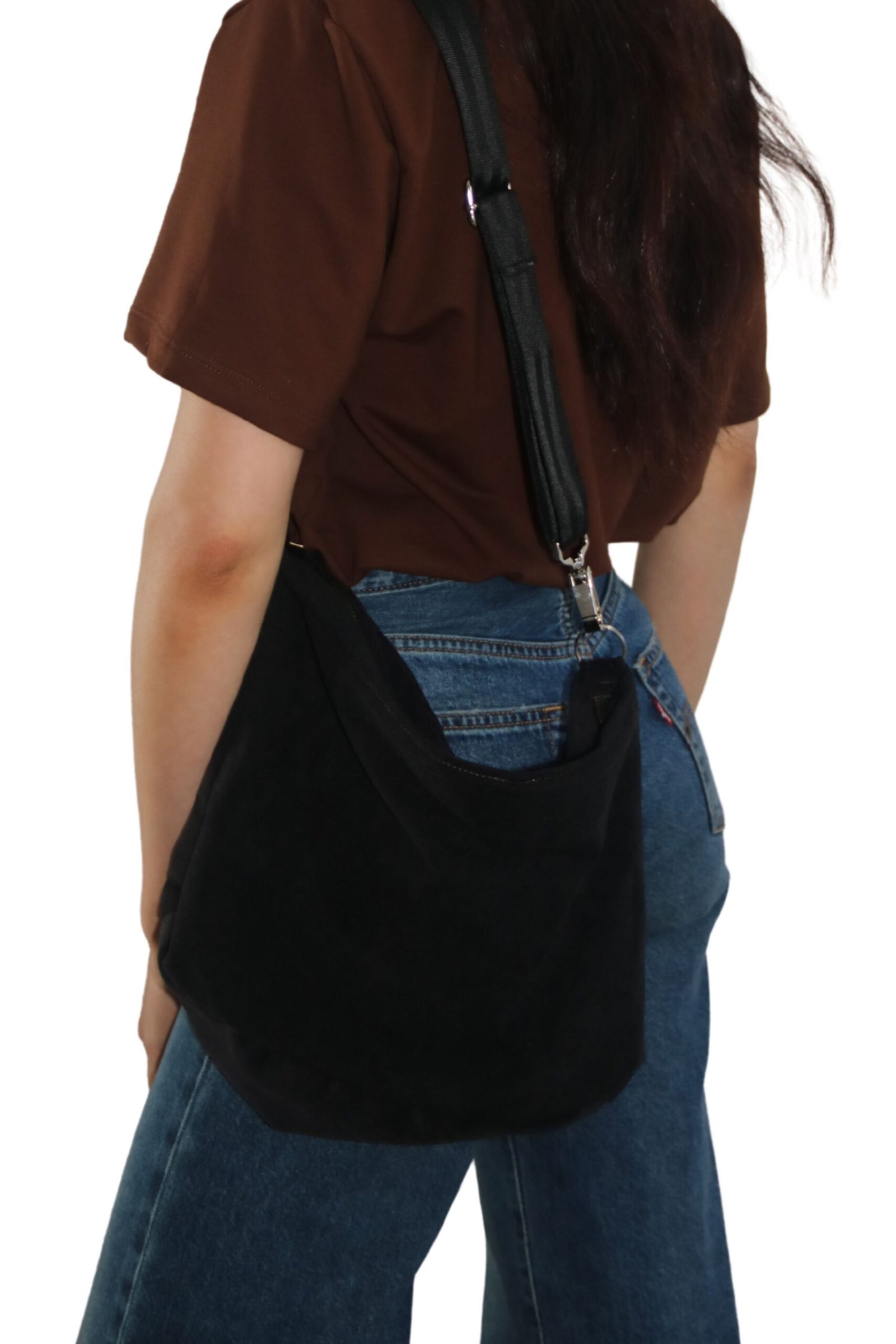 El bolso está confeccionado en tela de pana, un material cómodo, suave al tacto y elegante, que aporta carácter y versatilidad. Su textura lo convierte en una pieza fácil de integrar tanto a looks cotidianos como a contextos más formales, sin perder funcionalidad.