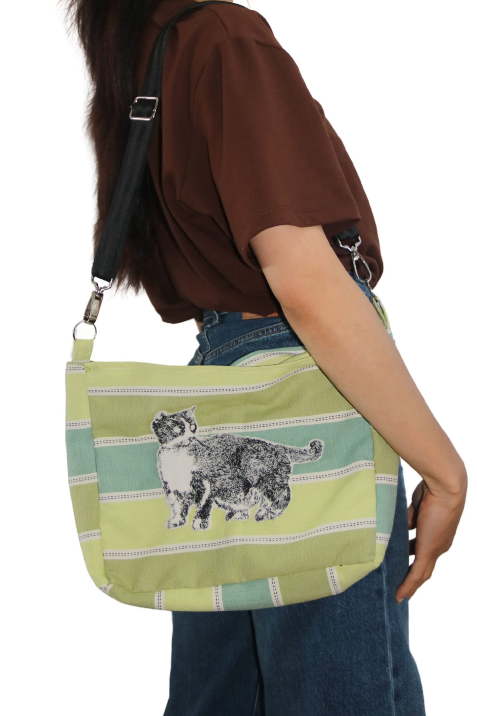 Esta es una pieza única en esta tela. Aunque el bordado del animal podrá aparecer en futuras versiones, cada bolso se realizará con textiles distintos —algunos provenientes de ediciones limitadas y otros de retazos únicos—. Esta versión no volverá a producirse, ya que el material disponible permitió confeccionar una sola pieza.