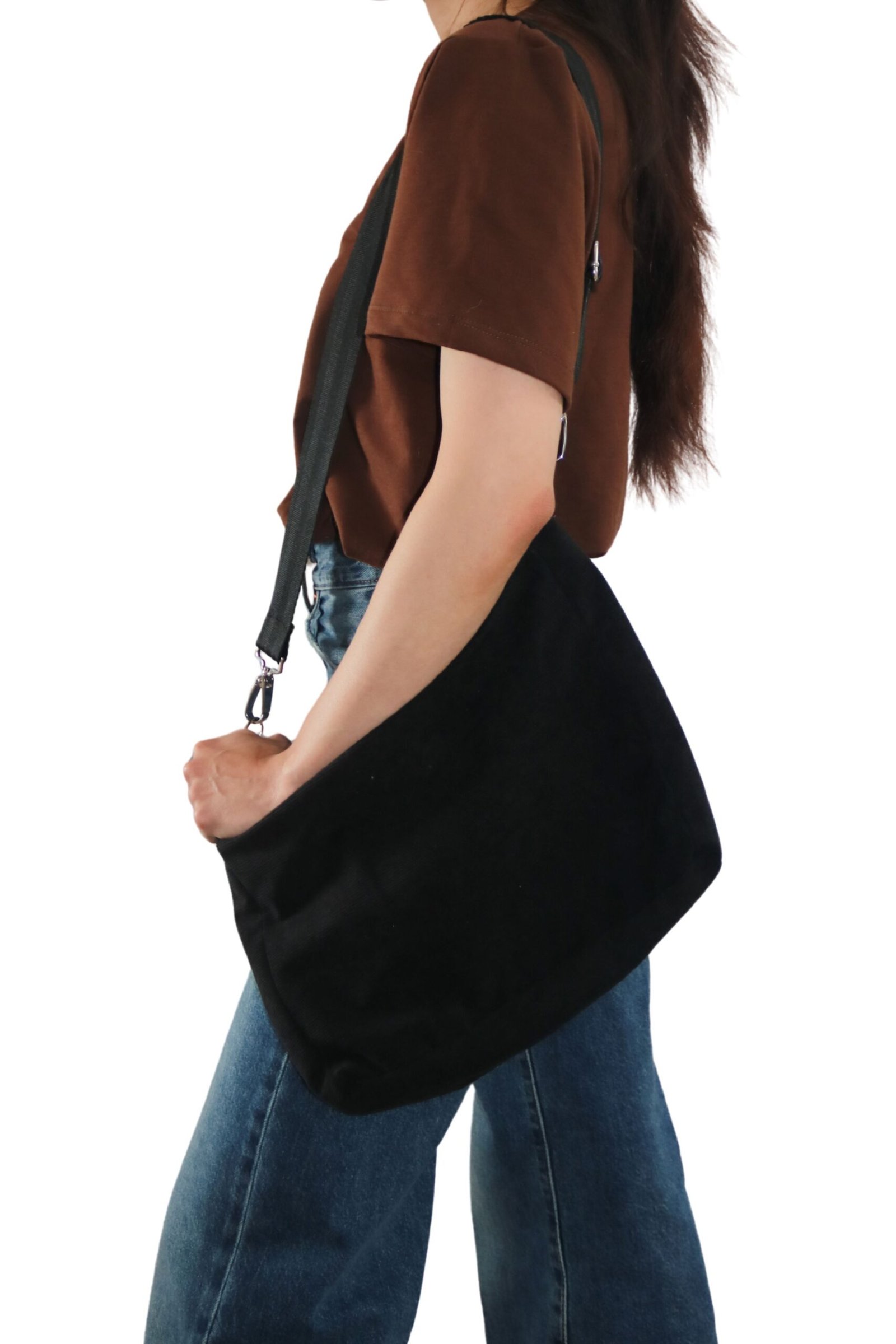 El bolso está confeccionado en tela de pana, un material cómodo, suave al tacto y elegante, que aporta carácter y versatilidad. Su textura lo convierte en una pieza fácil de integrar tanto a looks cotidianos como a contextos más formales, sin perder funcionalidad.