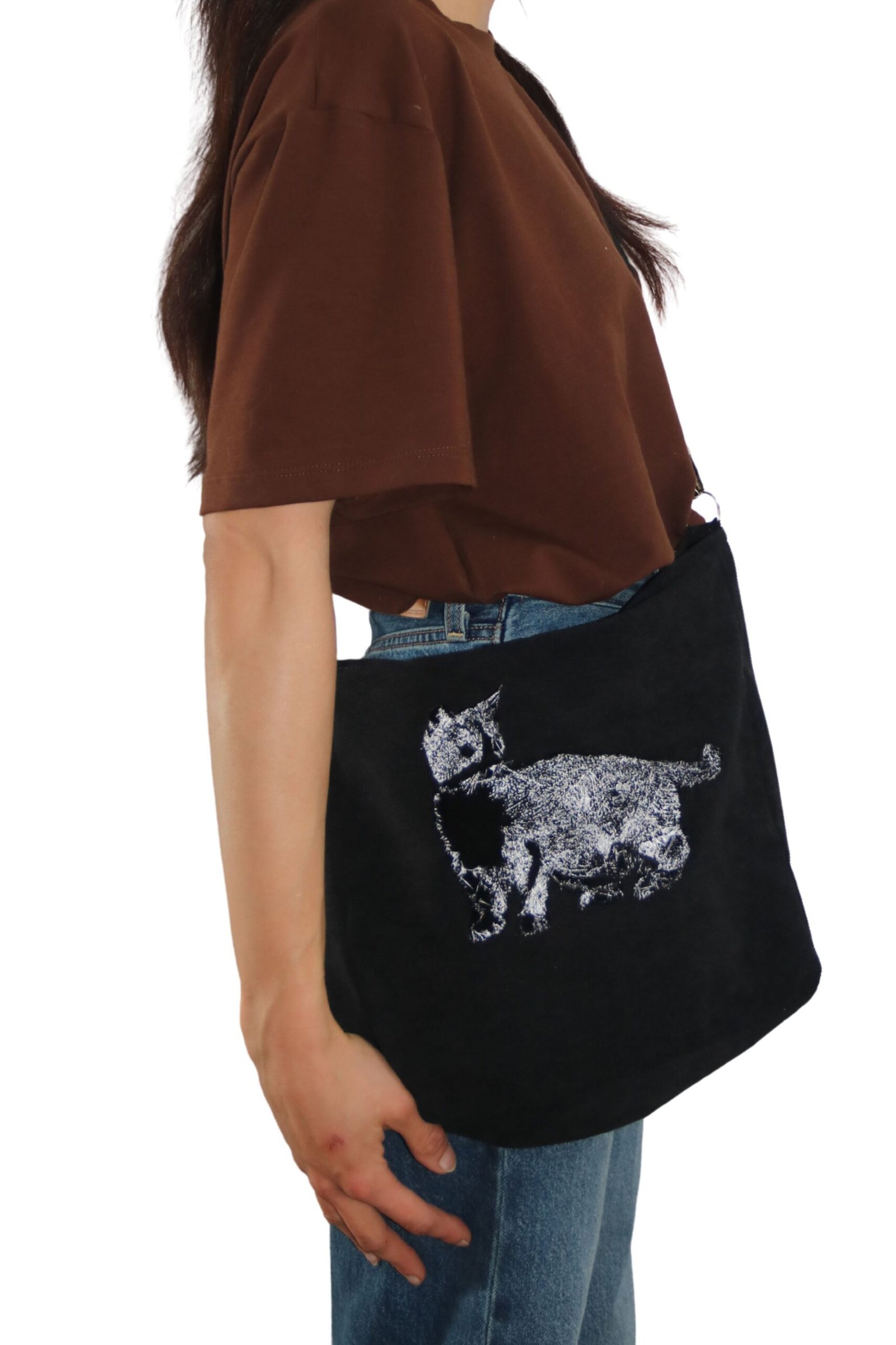 Como todos los Macchiabags, esta pieza cuenta con un interior ilustrado que amplía la narrativa del animal representado en el bordado. No se trata únicamente de un elemento decorativo: detrás de cada animal existe una historia, un conjunto de formas y detalles que surgen de su mundo simbólico. Al adquirir este bolso, no solo llevas un accesorio, sino que entras a formar parte de un imaginario ilustrado, donde la imagen del gato se transforma en objeto de uso diario.