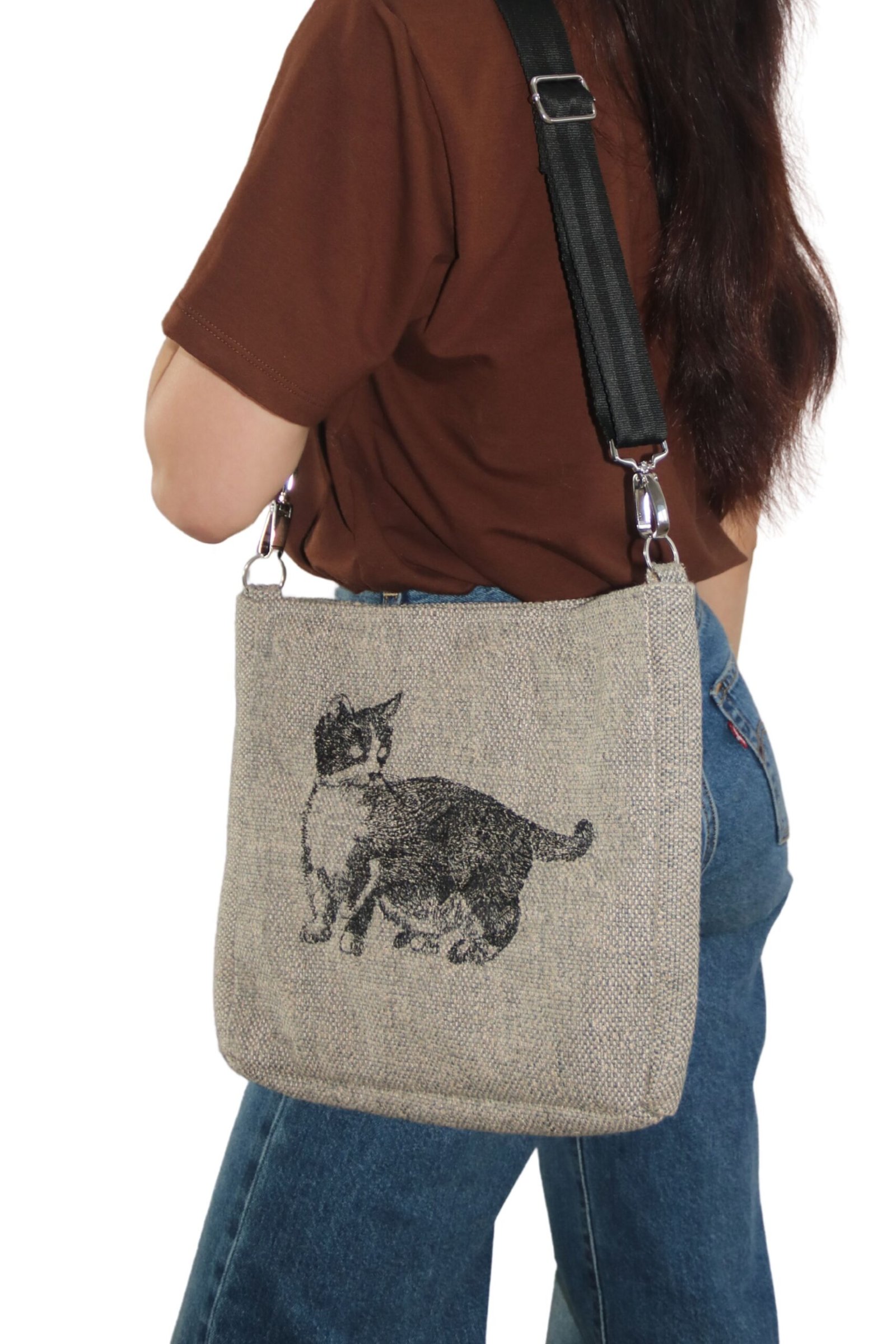Esta es una pieza única en esta tela. Aunque el bordado del animal podrá aparecer en futuras versiones, cada bolso se realizará con textiles distintos —algunos provenientes de ediciones limitadas y otros de retazos únicos—. Esta versión no volverá a producirse, ya que el material disponible permitió confeccionar una sola pieza.